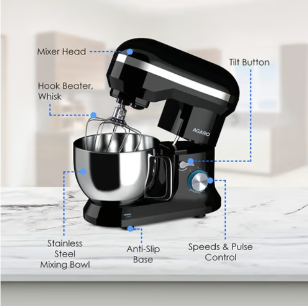 Agaro Royal Stand 1000W Stand Mixer (Black)